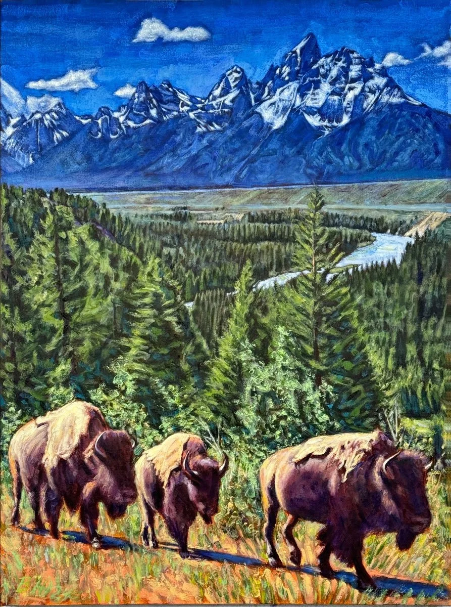The paintings on view are based on photo images Horowitz gathered during trips to dramatic visual locations. Sites include the Grand Tetons, Glacier National Park, southern Utah, and Rocky Mountain National Park. All of the canvases were created at his home studio in Woodstock.